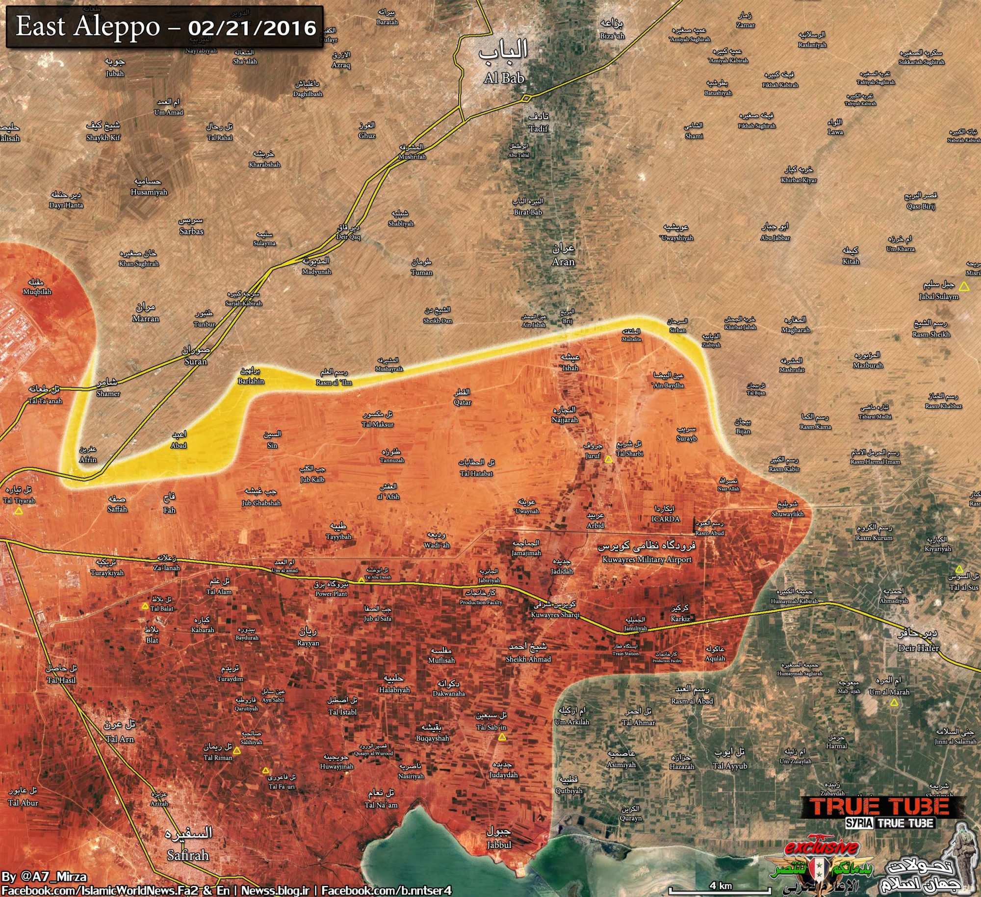 Так арабское агентство Almasdar сообщает, что командование группировки, судя по всему, не собирается спасать боевиков, блокированных в осаждённых деревнях Аль-Муфлиса, и Кусур Аль-Вуруд. Есть информация, что ИГИЛ перенаправила подкрепления в свою крепость – город Аль-Баб.