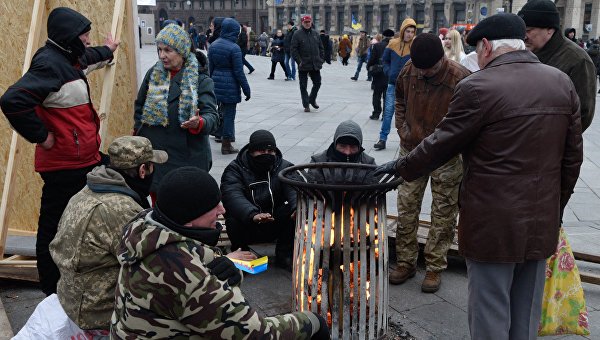 Активисты Третьего Майдана продолжают оставаться в центре украинской столицы, несмотря на похолодание. Ночь десятки митингующих провели в палатках, в настоящее время они греются у костров, которые разводят в металлических урнах.