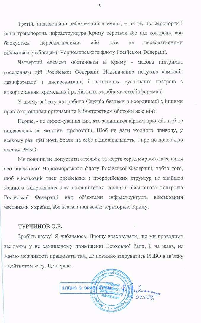 Совет национальной безопасности и обороны Украины обнародовал стенограмму заседания, которое состоялось 28 февраля 2014 года, во время начала выхода Крыма из состава Украины.