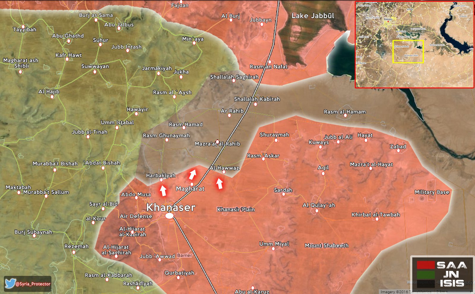 Вчера бойцы сирийского спецназа «Тигры» (САА) и ливанской «Хезболлы» атаковали террористов ИГИЛ с севера, с последующим наступлением и захватом н.п. Расм Аль-Нафаль при продвижении на окраину села Шалала аль-Кабира. Кроме того, Сирийская Арабская армия при поддержке бригады палестинской милиции Ливa Аль-Кудс после ожесточенных уличных боев смогла взять Ханассер — стратегически важный населенный пункт.