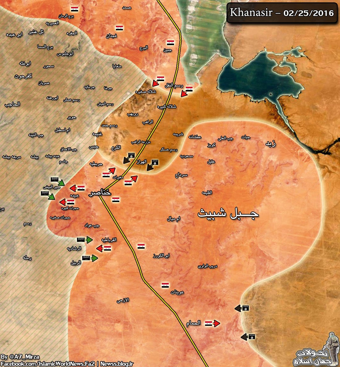 Лишь малая часть территории остается оккупированной ИГИЛ на равнине Ханассера. Поле зачистки этого района равнины правительственные силы должны будут атаковать позиции боевиков у захваченного участка шоссе Шейх Хилал — Итрия, чтобы восстановить единственный и важнейший маршрут снабжения Алеппо.