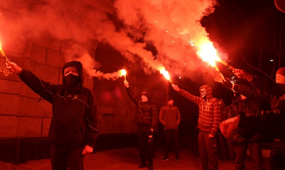 Экстремистка Тамара Шевчук около половины первого ночи понедельника сообщила на своей странице о том, что участники акции зажгли фаеры.