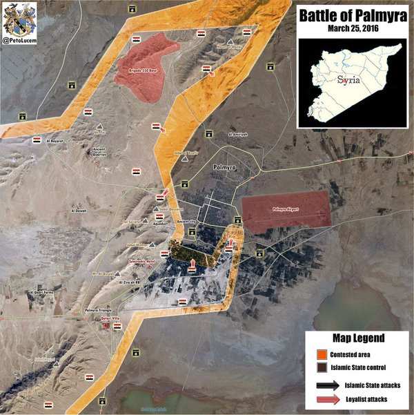 В пятницу 25 марта, несколько штурмовых групп Сирийской Арабской армии прорвались сквозь оборону ИГИЛ* и вошли в Пальмиру (Тадмур).