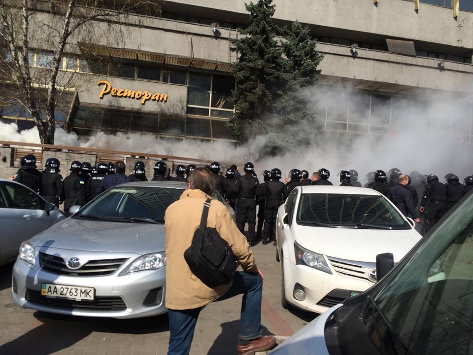 Утром 6 апреля в Киеве полицейские начали спецоперацию по изгнанию боевиков «Айдара» из захваченного ими здания отеля «Лыбидь».
