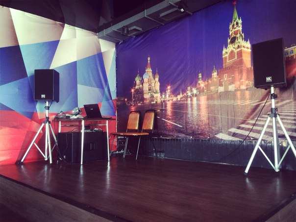 Фасад, расписанный под триколор, баннеры с российскими флагами… На одной из стен — яркая растяжка. Бодрая троица из фильма «Особенности национальной охоты» и надпись: «Ну… за санкции!». Поди тут поспорь.