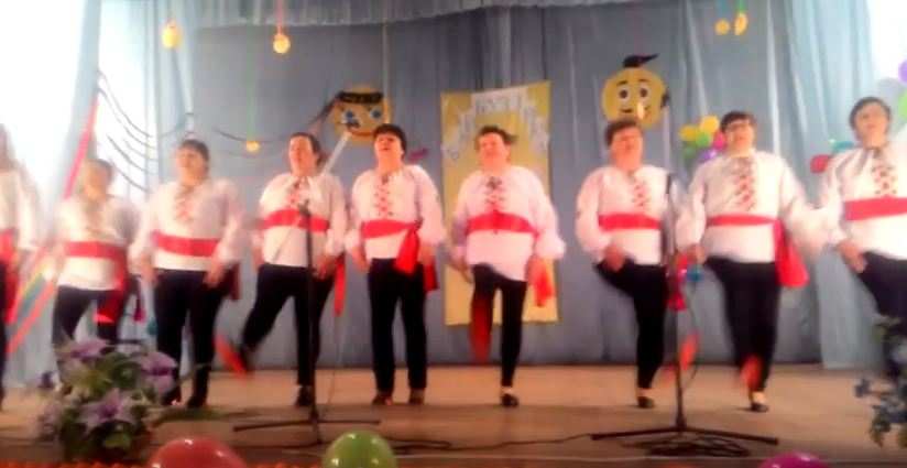 Когда хочется исполнить почти запрещенную «москальскую» песню, но нужно сохранить должный уровень патриотизма, нужно просто надеть вышиванки и кушаки и немного изменить текст.