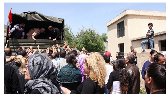 Как сообщил начальник группы формирования и доставки гуманитарных грузов российского Центра по примирению враждующих сторон в Сирии подполковник Виталий Вербицкий, беженцы получили пакеты с продовольствием.