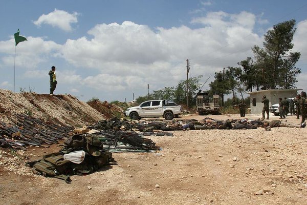 28 апреля трупы убитых боевиков на грузовиках привезли из населенного пункта Айн-Дакна в Африн, где народ ликовал, приветствуя успехи бойцов-курдов.