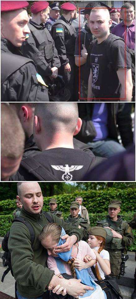 На кадрах, снятых в Киеве возле парка Славы 9 мая 2016 года во время шествия «Бессмертного полка», видно, как неонацисты, пришедшие, чтобы сорвать мероприятие, демонстрируют фашистскую символику (которая теоретически запрещена на Украине).