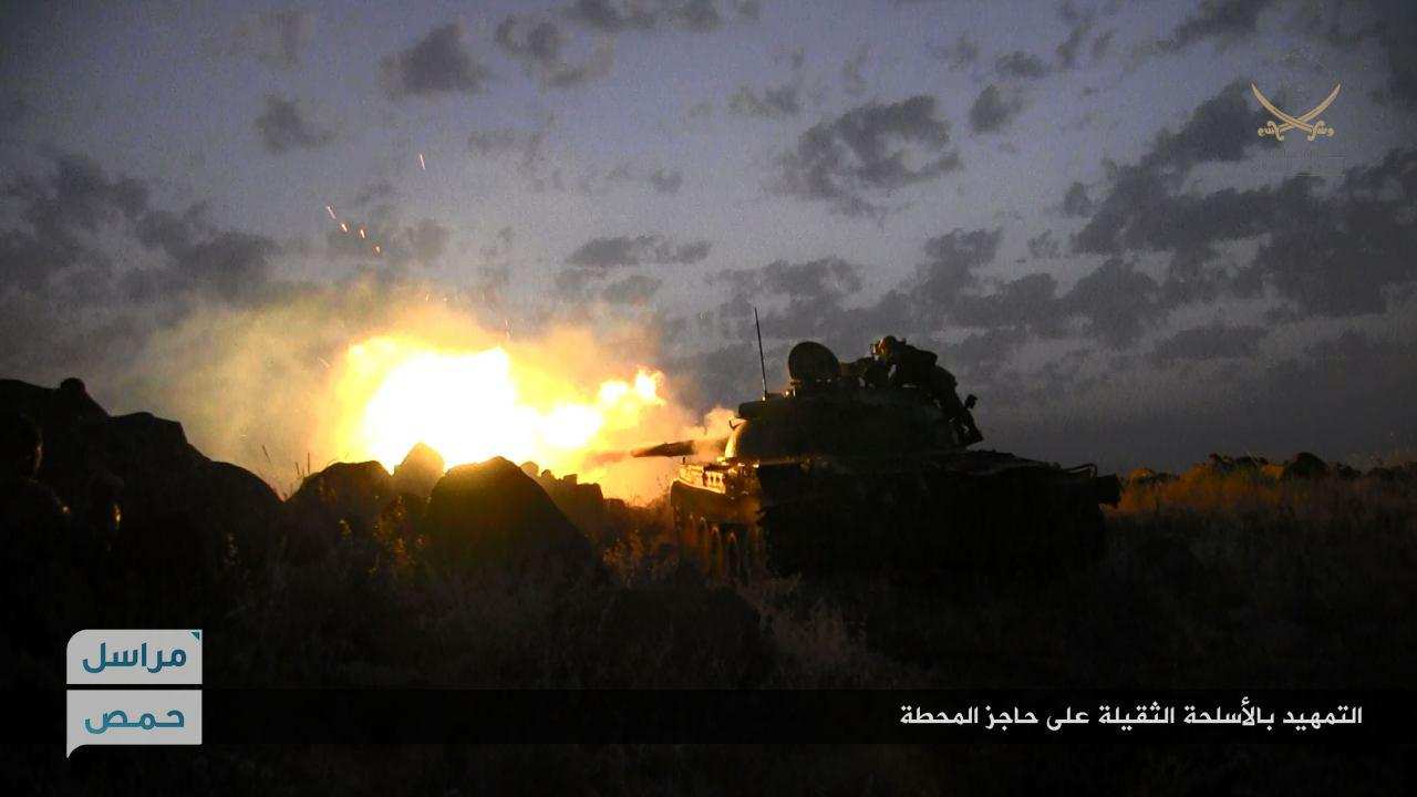 На фото атака террористов «Джабхат ан-Нусры» и союзных бандгрупп на топливную станцию Харбнафса в провинции Хама.