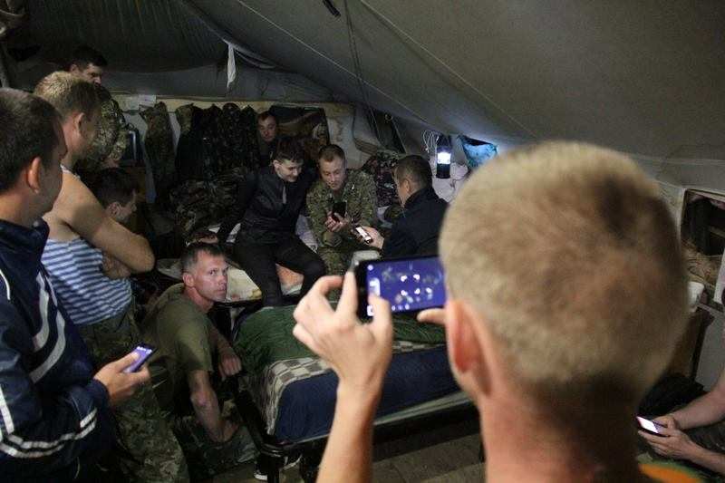«Ночной приезд в район проведения “АТО” Надежды Савченко стал для всех неожиданностью. Однако народному депутату Украины удалось плодотворно пообщаться со многими военными, встретиться с бывшими сослуживцами», — говорится в сообщении «пресс-центра АТО» в сети Facebook.