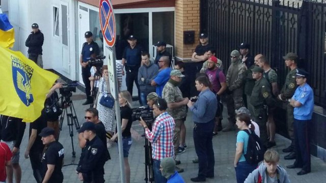 Около сотни неонацистов заблокировали и закидали яйцами генконсульство России в Одессе.