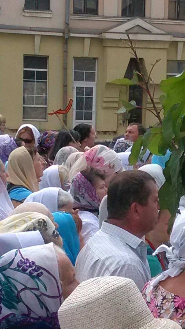 В православном мероприятии участвуют несколько тысяч человек. Люди идут большим потоком по улицам города.