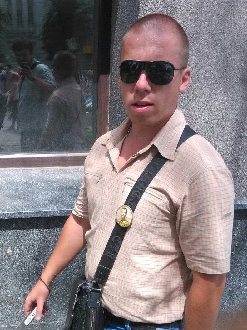 Как видно на кадрах по Холодной горе в Харькове идут люди с георгиевскими ленточками и значками с Николаем II.