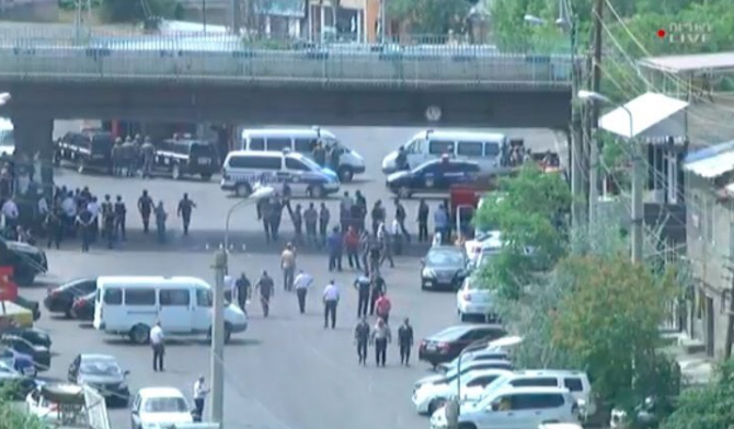 Власти Армении начали спецоперацию по освобождению захваченного отделения внутренних дел. На крышах близлежащих зданий Служба национальной безопасности Армении разместила снайперов.