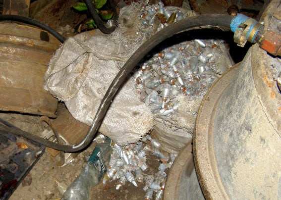 Установлено, что в разных помещениях домохозяйства хранилось оружие и взрывоопасные предметы, среди которых были снаряды 30-го калибра, винтовка, шпага, лента для пулемета, муляж гранаты, несколько десятков гильз от патронов, наземные сигнальные патроны и большое количество разобранных частей от снарядов разного калибра.