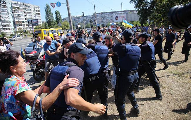 Представители Национальной гвардии, которые оцепили здание райсуда, пытались задержать нескольких наиболее активных нарушителей общественного порядка, которые пришли поддержать «торнадовцев», после чего завязалась драка. В потасовку с другими защитниками «педофилов из АТО» вмешались полицейские.