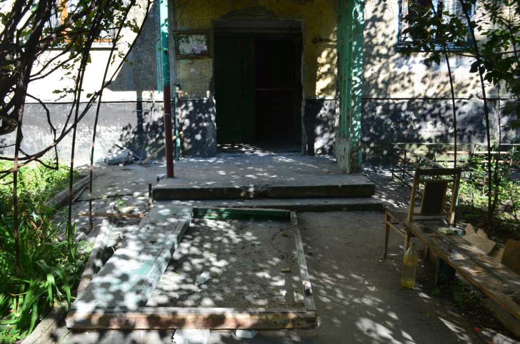 Один снаряд повредил крышу, другой выбил дверь подъезда.