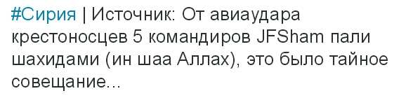 «Погибли командиры самой боеспособной группы в Сирии, которые воюют против режима Асада…» — пишут СМИ бандформирований.