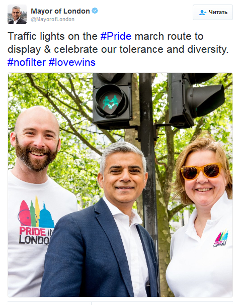 В июне в Лондоне проходил традиционный гей-парад, который власти решили отметить, заменив традиционных «зеленых человечков» на гомосексуальные пары. Они появились на 50 светофорах рядом с Трафальгарской площадью. Двое мужчин или двое женщин держатся за руки и формируют сердце. Также на светофорах можно увидеть различную ЛГБТ символику.