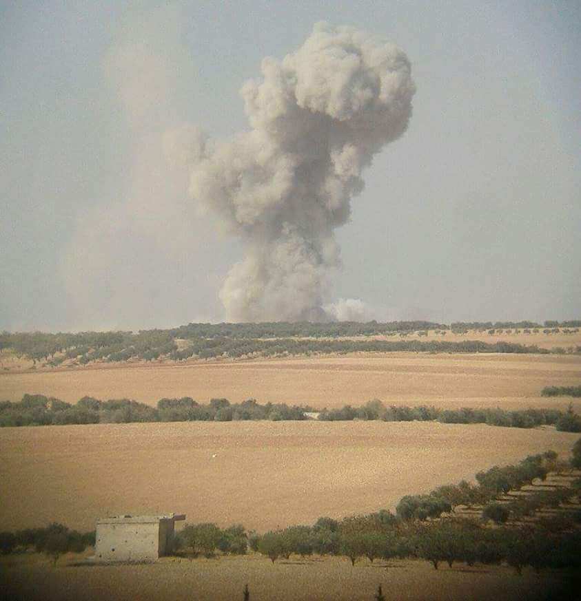 На фото авиаудары у городка Маардес на севере Хамы, 15 октября 2016 г.