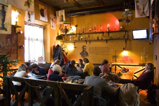 Потом подъём на Высокий замок, опять фотографии. Обед в «Гасовой лямпе» — плохо прожаренная сковородка картошки с жирноватыми колбасками. Довольная отрыжка и вперед наслаждаться мертвецкой эстетикой на Лычаковское кладбище да мощами митрополита Шептицкого в Соборе святого Юра.
