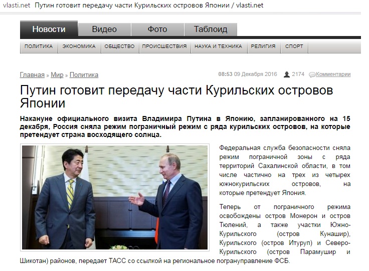 Особенно это стало заметно на фоне встречи Синдзо Абэ с Владимиром Путиным, которая состоялась 15 декабря текущего года на курорте недалеко от японского Нагато.
