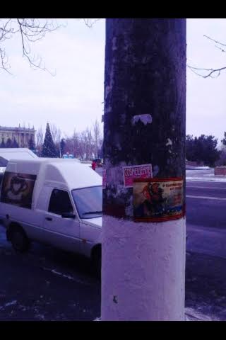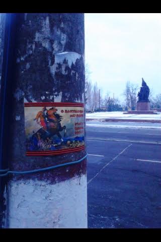 Под Новый год неизвестная группа николаевцев расклеила на улицах города листовки, окаймленные георгиевской лентой. На них изображен воин на боевом коне с шашкой наголо. «С наступающим 2017 годом! Счастья, здоровья, победы», — гласит надпись на плакате.