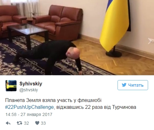 «Планета земля приняла участие во флешмобе, отжавшись 22 раза от Турчинова».
