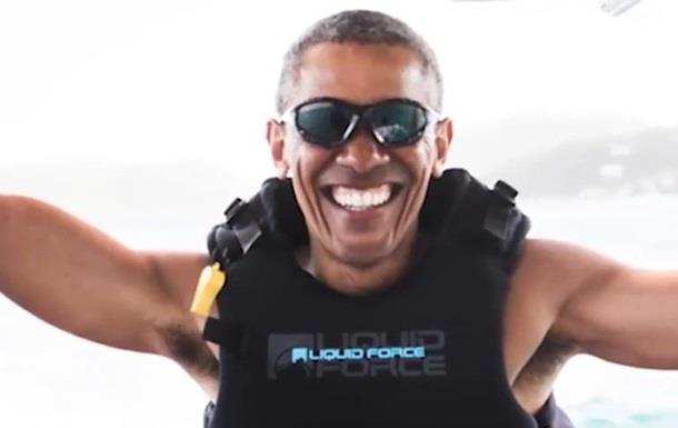 Видео снято на Виргинских островах, где экс-президент гостит у миллиардера Ричарда Брэнсона и заодно обучается кайтсерфингу.
