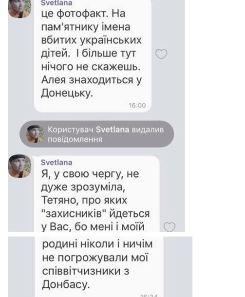 Та ответила, что не понимает, почему ей угрожают ее соотечественники из Донбасса, а также заявила, что не хочет, чтобы ее детей втягивали в сомнительные инициативы.