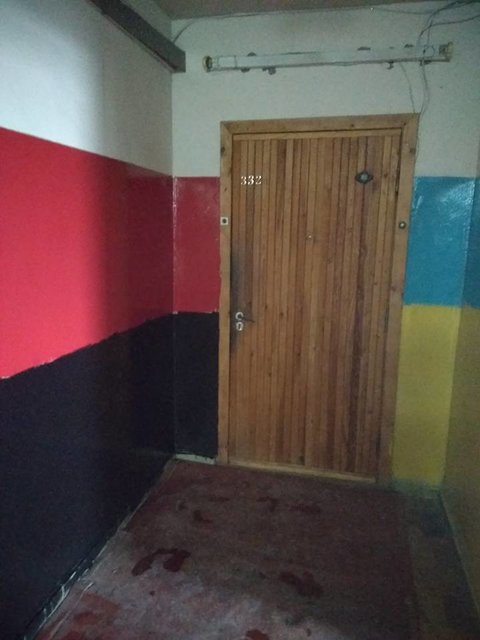 Как в крематории: в Киеве подъезд перекрасили в «патриотические цвета» (ФОТО)