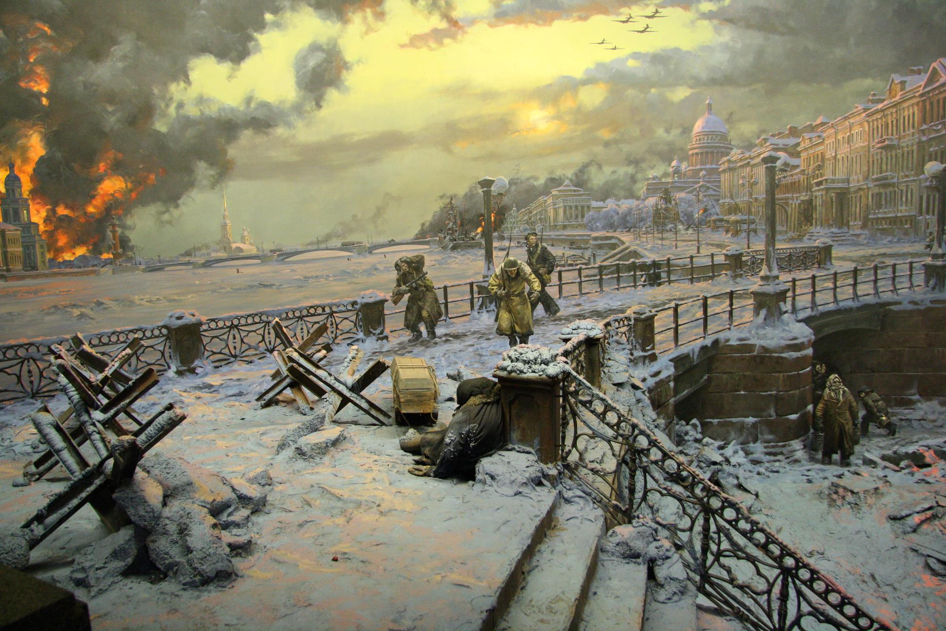 Блокада Ленинграда, начавшаяся 8 сентября 1941 года, длилась почти 900 дней. Единственный путь — Дорога жизни, по которому доставлялось в город продовольствие, был проложен по льду Ладожского озера. Блокада была прорвана 18 января 1943 года, однако до ее полного снятия — 27 января 1944 года — ленинградцам пришлось ждать еще целый год. За годы блокады погибли, по разным данным, от 400 тысяч до 1,5 миллиона человек. Так, на Нюрнбергском процессе фигурировало число 632 тысячи человек. Только 3% из них погибли от бомбежек и артобстрелов, остальные умерли от голода.