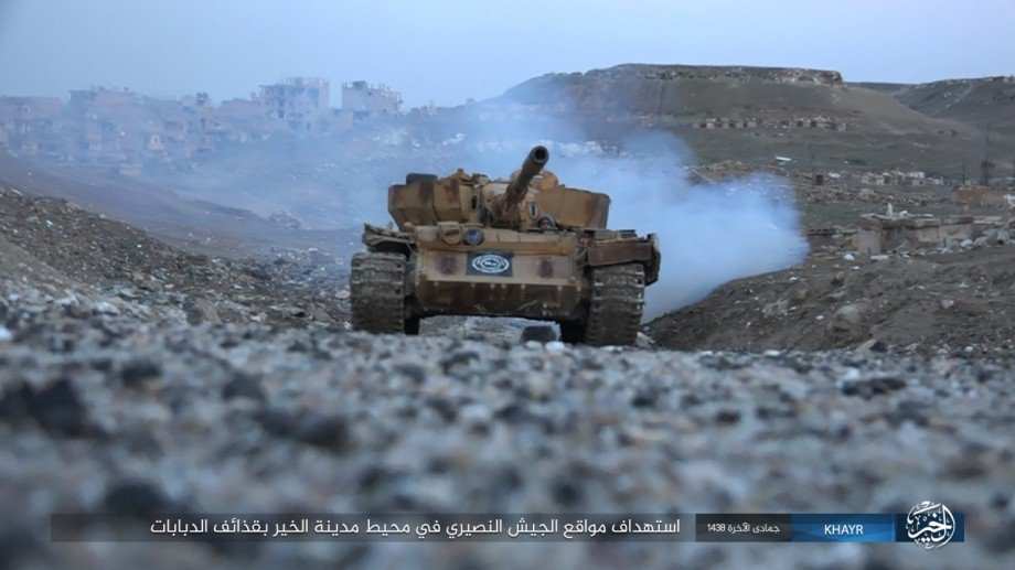 Пропагандистское крыло группировки публикует ряд фото, показывающих методы военных действий, используемых в понедельник, как видно, иррегулярные бандиты имеют на вооружении большое количество танков и иной военной техники, которую применяют в битве за Дейр-эз-Зор.