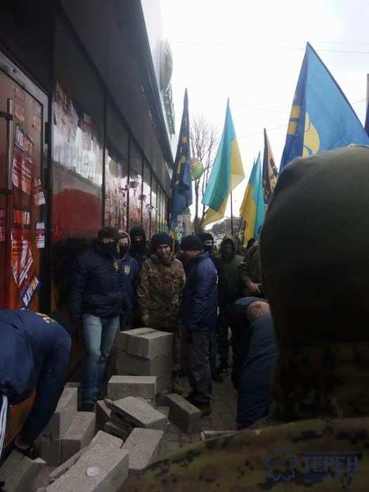 В Тернополе радикалы замуровали вход в отделение Сбербанка.