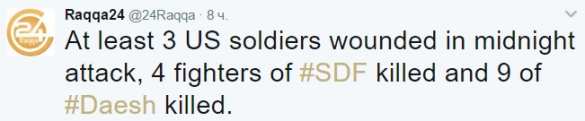 «По крайней мере 3 американских солдата были ранены в полуночной атаке, 4 бойца SDF убиты, также уничтожены 9 террористов Даиш».