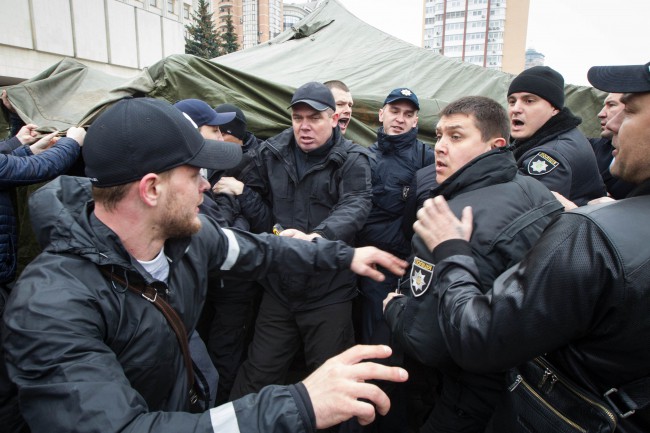 После того, как полиция запретила участникам акции ставить палатку возле Киевской облгосадминистрации, началась драка, в итоге верх одержали забастовщики. Известно, что от них даже прозвучали угрозы поджечь одну из 147 маршруток, которые водители подогнали к месту акции протеста.