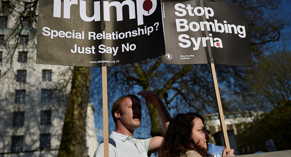 В то время, как крупные политики поддерживают ракетный удар ВМС США по Сирии, обычные граждане активно протестуют против политики властей Соединенных Штатов.