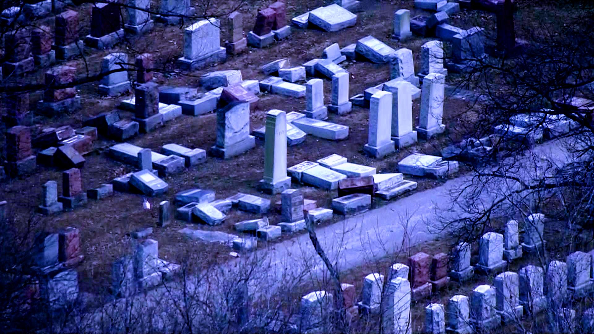 О случившемся сообщила женщина, пришедшая на могилу своего отца на кладбище Маунт Шэрон. Там она обнаружила десятки разрушенных надгробий.
