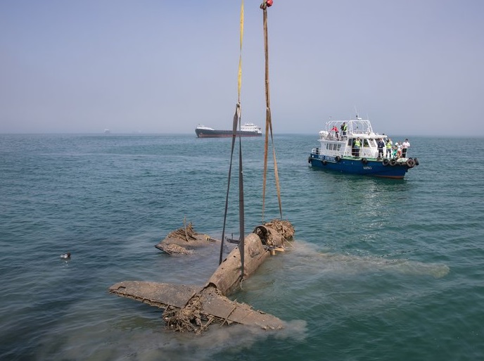 В преддверии Дня Победы экипаж плавучего крана, задействованный в работах по строительству моста через Керченский пролив, помог поисковикам поднять со дна моря советский самолет времен Великой Отечественной войны.