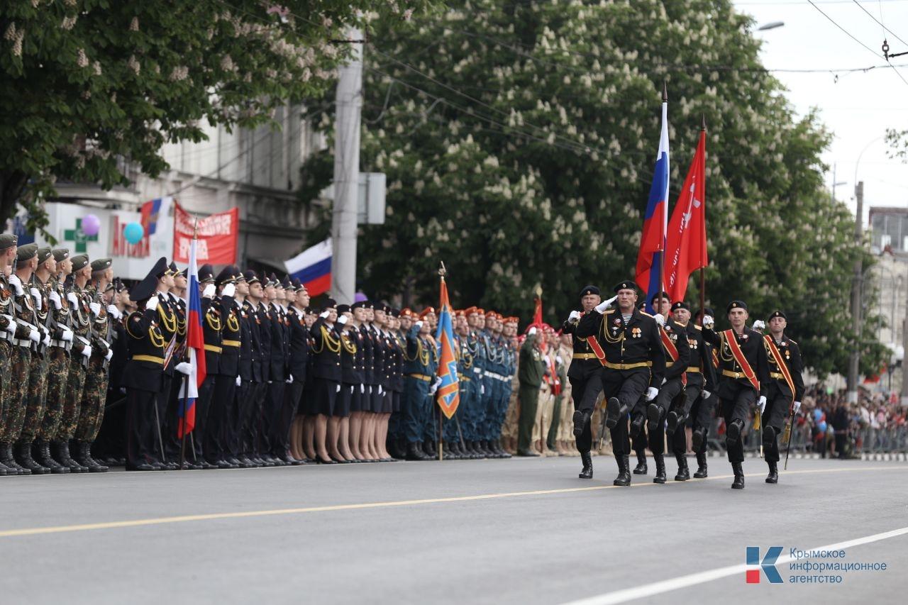 Парадные «коробки» насчитывали около тысячи военнослужащих армейского корпуса Черноморского флота, отдельной бригады береговой обороны, артиллерийского, морского инженерного, смешанного авиационного полков, личный состав подразделений Росгвардии и крымского управления МЧС. Также в парадных расчетах прошли юнармейцы и кадеты, конным маршем — казаки.