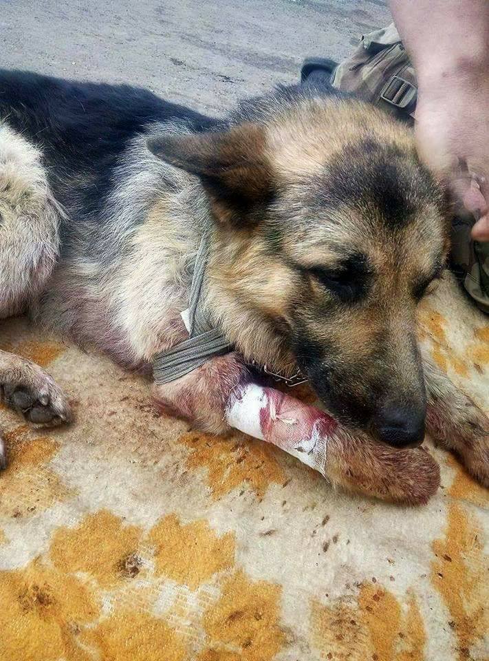 Отметим, что факт ранения собаки и даже ее лечения вполне может иметь место, однако образ «четвероногого героя, закрывшего собой атошников», который на скорую руку лепят из овчарки, вызывает лишь улыбку.