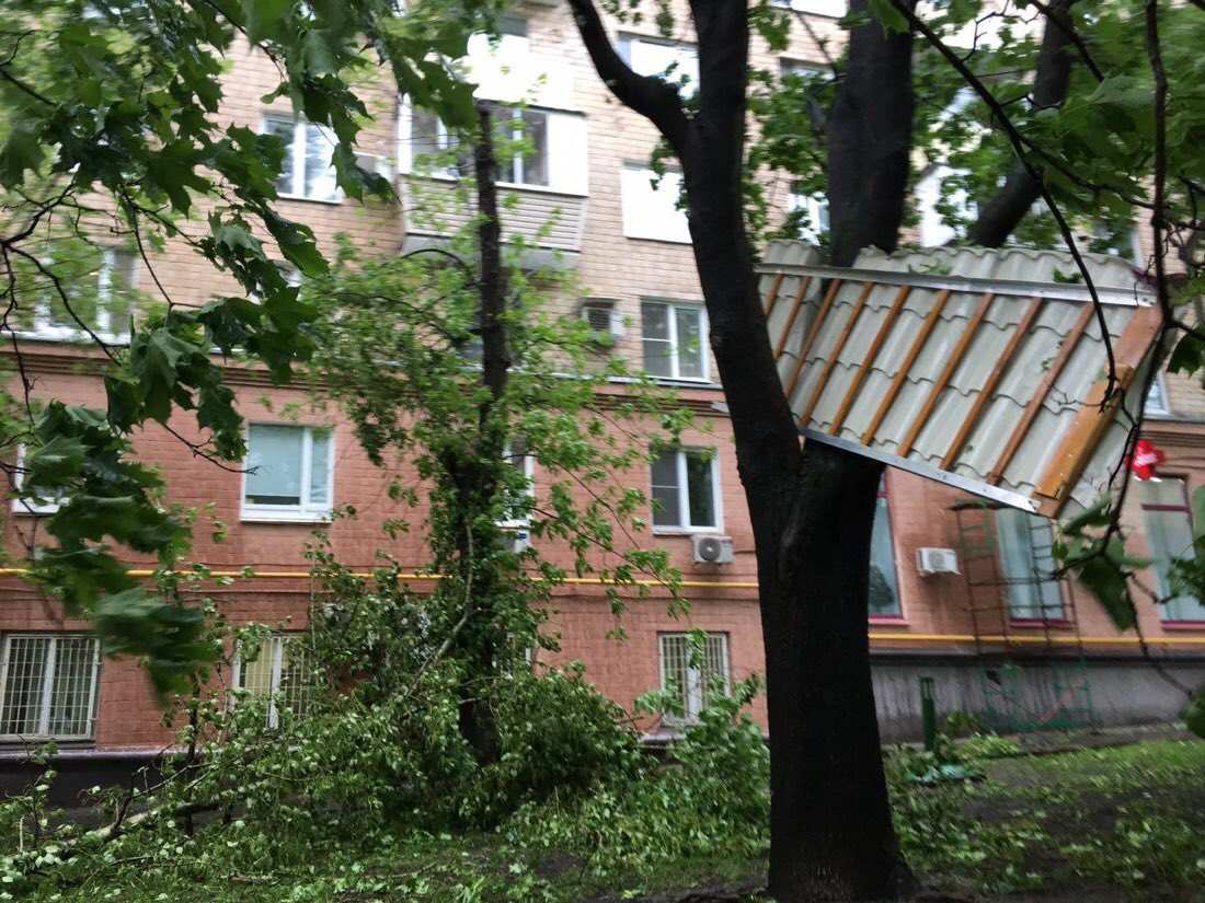 В понедельник днем в Москве начался ураган с ливнем и грозой. Порывы ветра достигали 16 метров в секунду.
