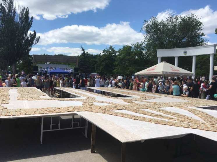 «Далее все эти „угощения“ пол дня лежали под открытым солнцем, дул ветер, песок… А потом горожанам предложили торжественно скушать „НАЦИОНАЛЬНЫЙ РЕКОРД“ в виде герба Украины.