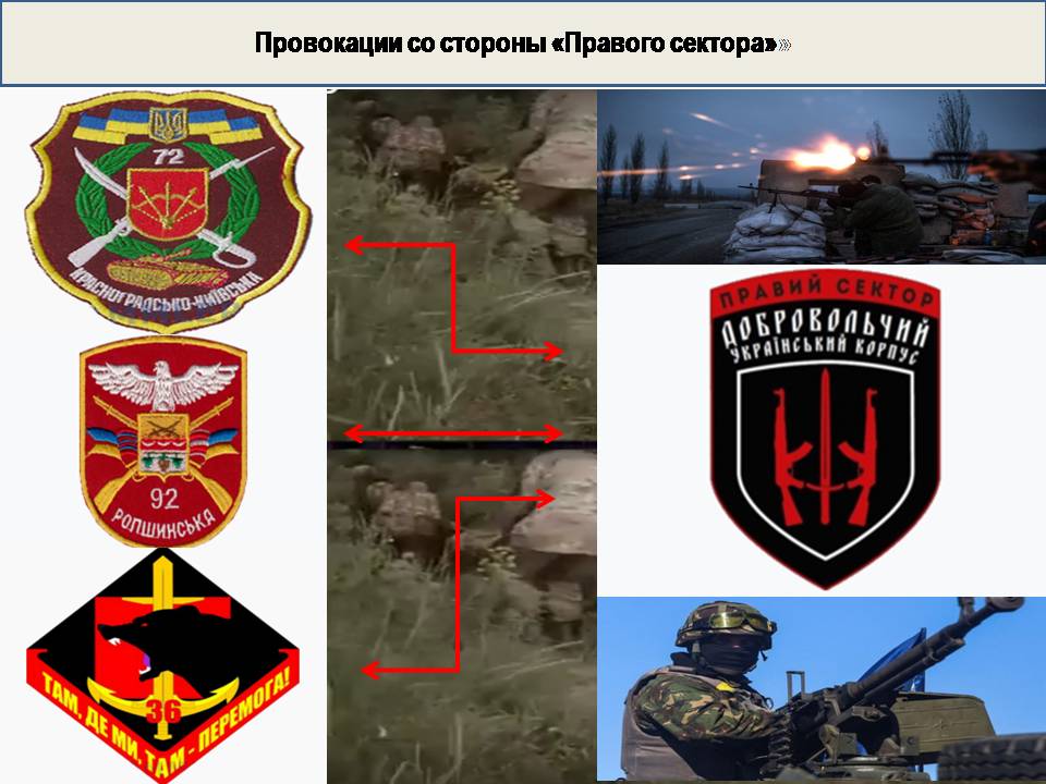 По данным нашей разведки, обстрелы населенных пунктов и объектов жизнеобеспечения ведут преимущественно националистические батальоны и подразделения ДУК «Правый сектор»*, входящие в состав ВСУ. Обстрелы имеют цель спровоцировать наши подразделения на ответные действия и подставить под огонь армии ДНР подразделения ВСУ, не желающие воевать.