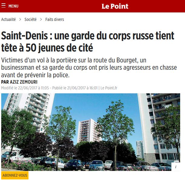 «Но грабители не приняли во внимание то, как серьезно настроены были эти русские: никто не ожидал увидеть погоню из американских фильмов в 93-м департаменте Сен-Дени. Русским даже не пришло в голову вызвать и дождаться полиции — они немедленно решили преследовать воров самостоятельно», — пишет Le Point.
