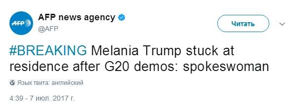 «Первая леди» США была заблокирована в резиденции и не смогла прибыть на саммит G20, где в настоящий момент Владимир Путин встречается с Дональдом Трампом