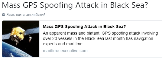 «Приборы GPS периодически не могут получить GPS-сигнал по мере приближения к берегам Новороссийска (Россия). На данный момент зафиксирован показатель снижения точности определения положения в горизонтальной плоскости (HDOP) на отметке 0.8 в пределах 100 м., при этом заданное местоположение фактически находится в 25 морских милях отсюда; ...Я подтверждаю, что все корабли в этой зоне (более 20) столкнулись с такой же проблемой».