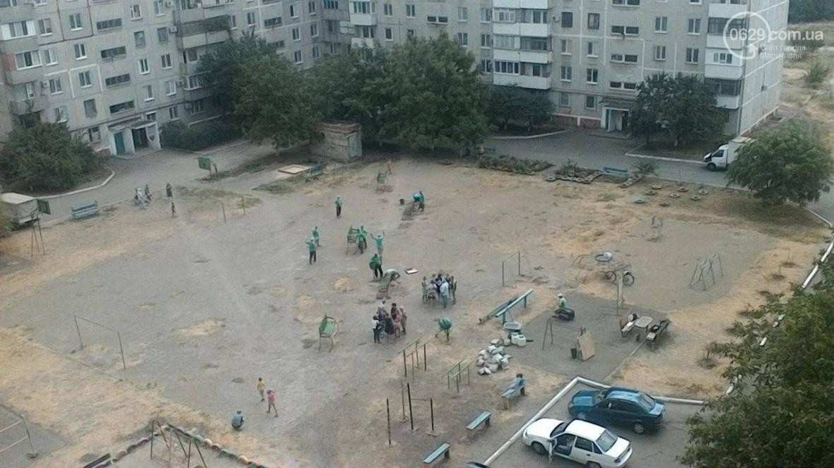 В мариупольском микрорайоне «Восточный» компания «Метинвест» поставила лавки в центре футбольного поля.