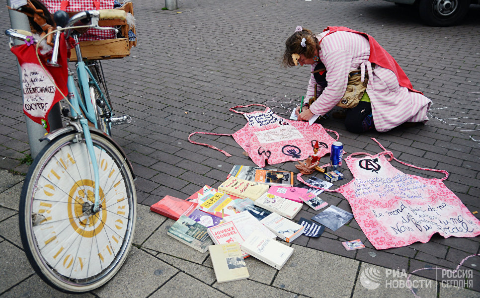 Участница международной акции в Брюсселе за ликвидацию насилия в отношении женщин